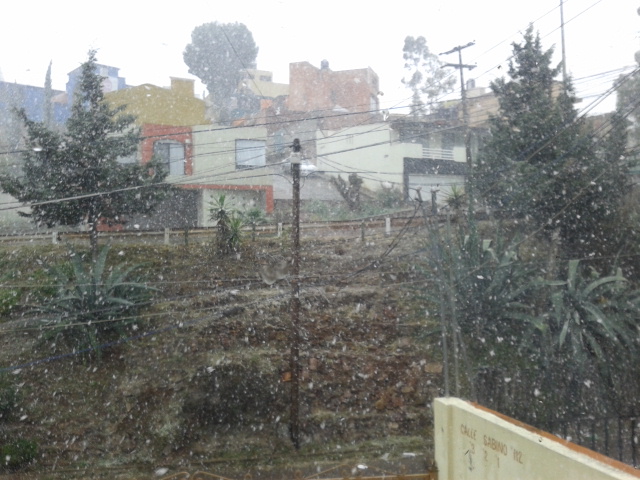 So, und heute ist es wieder so weit. Die nächste Kältefront und mit einem Grad Außentemperatur schneit es mal wieder in Zacatecas. Dieses Wetter verfolgt mich aus Europa. Alle finden es unglaublich. In der Uni wird teilweise der Unterricht abgesagt und ich kann nur den Kopf schütteln. Ich dachte es gibt hier keine Niederschläge? Ich dachte, es wäre schon Frühling!?