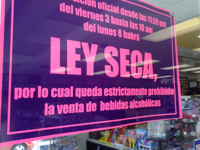 Seit gestern darf in den Läden kein Alkohol verkauft werden, es gilt das ley seca – das trockene Gesetz -, damit die Menschen morgen einen klaren Gedanken fassen können. Auch das wird nichts helfen – die Regelung finde ich trotzdem ganz angebracht. Aber was nützt schon ein paar Tage? Vorgestern konnten die Menschen ja noch kaufen…