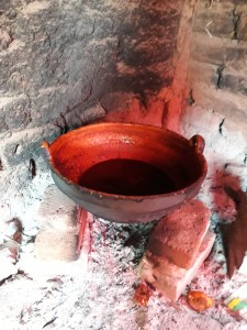 Wir machen jedes Jahr nun asado de boda (asado bedeutet normalerweise braten, aber wenn ich sage Gulasch kommt es der Wahrheit näher…). Ein Gulasch auf zacatecanische Art. Statt Tomaten nehmen sie Chili, um eine Soße zu bekommen. Weitere Zutaten sind Orangenschale, Lorbeerblätter und Kreuzkümmel. Das ist ein Gericht, was sehr aus dieser Region stammt. Dazu gibt es Reis und Mais-Tortillas.