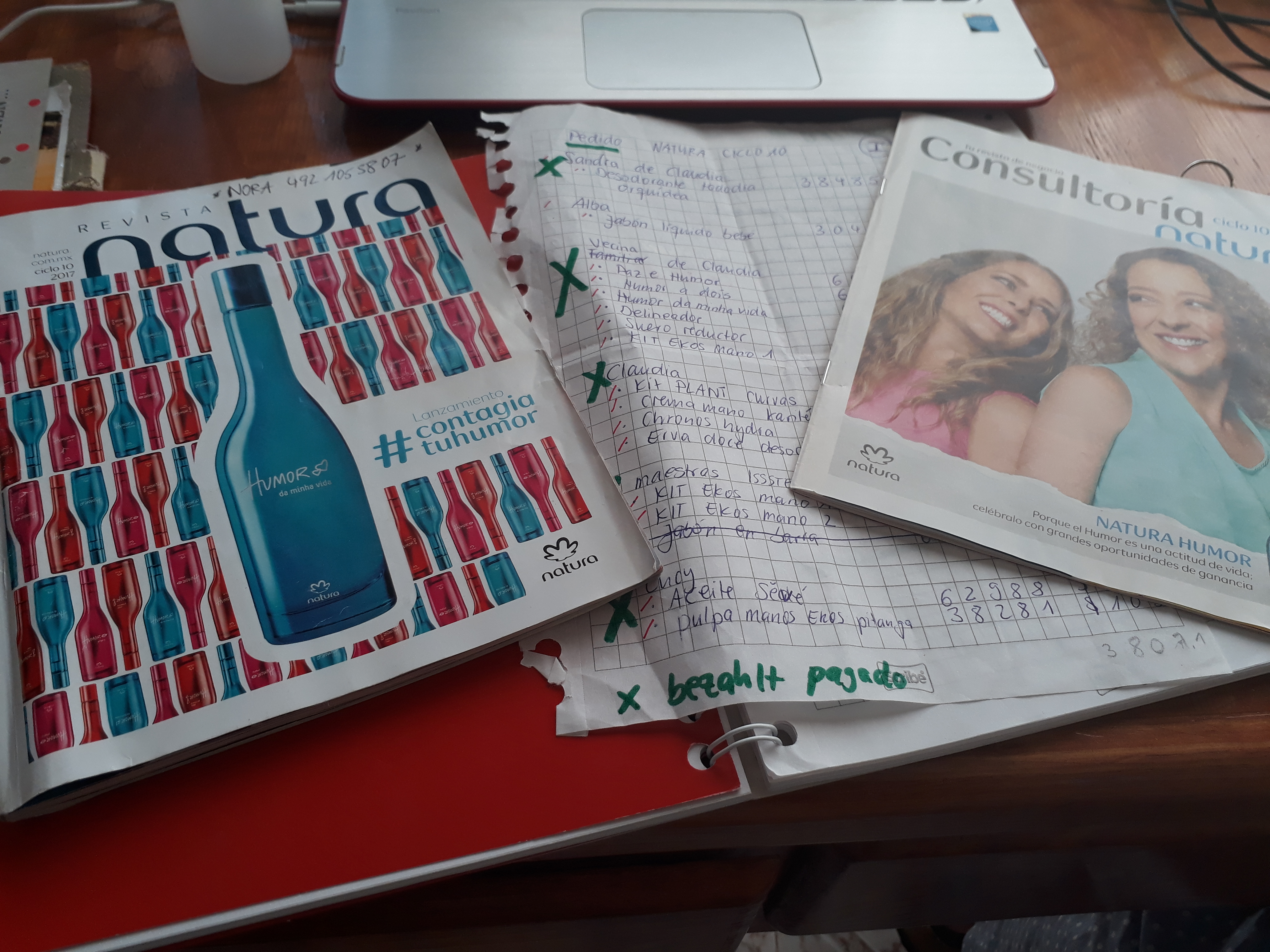 Natura gibt es in Europa nicht. Ich habe es im Internet gefunden, die Preise sind dann aber horrende. Man könnte es sicherlich sehr, sehr gut verkaufen. Weil die Produkte gut sind. Über einen Katalog? Wie geht das denn!? Fragt sich der eine oder andere jetzt vielleicht. Es ist wie Tupperware. Ich habe einen Katalog, den zeige ich, ich zeige Produkte und die Menschen bestellen bei mir, ich bestelle bei der Firma und bekomme das Paket nach Hause und liefere dann an die Kunden.