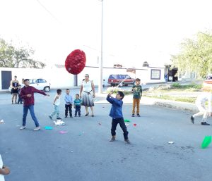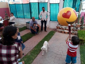 Meistens ist die Piñata der Auftakt beim Kindergeburtstag für andere Aktivitäten. Soll heißen, dass ich es bisher erlebt habe, dass um 5 Uhr/6 Uhr nachmittags, wenn die Sonne nicht mehr so stark ist und soweit die meisten Gäste mit ihren Kindern noch anwesend sind, die Piñata zerschlagen wird. Danach folgen Kuchen essen und „bolos„-Ausgabe (Tüten mit Süßigkeiten, die jedes Kind und auch mal Erwachsenen mitnehmen kann) und damit kann man dann gehen. Wie immer muss ich betonen, dass das für Zacatecas gilt und die Kindergeburtstage, die ich besucht habe.