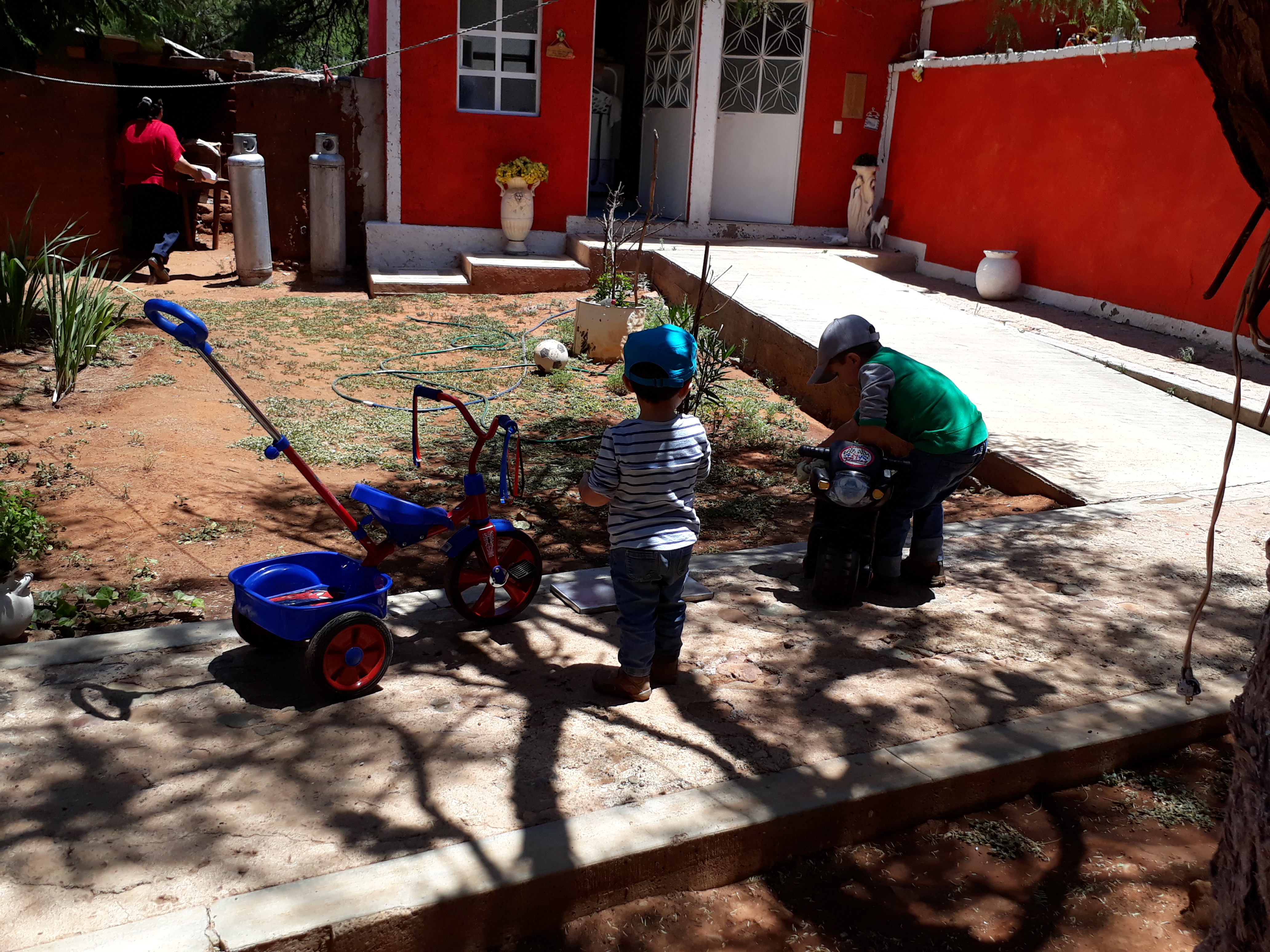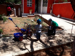 Wie sehen eigentlich so unsere Wochenenden aus, hier in Mexiko, hier in Zacatecas? Normalerweise steht seit Anfang des Jahres jeden Samstag morgen Schwimmen auf dem Programm mit der ganzen Familie. Danach essen wir Gorditas Allerdings zuhause, wir holen sie nur, hier in der Nachbarschaft. Gegen 12 Uhr machen wir uns fertig, packen Dreirad und Babytasche ein und dann geht es aufs Dorf nach La Era (das bei google kaum angezeigt wird… nur als Häuseransammlung – es liegt hinter Tacoaleche, die nächstgrößere Kleinstadt). Dort wohnen meine Schwiegereltern, 35 Kilometer von uns entfernt; das dauert zirka 45 Minuten bis wir dort sind. Ein Stück geht durch Dörfer und daher ist die Geschwindigkeit reduziert.