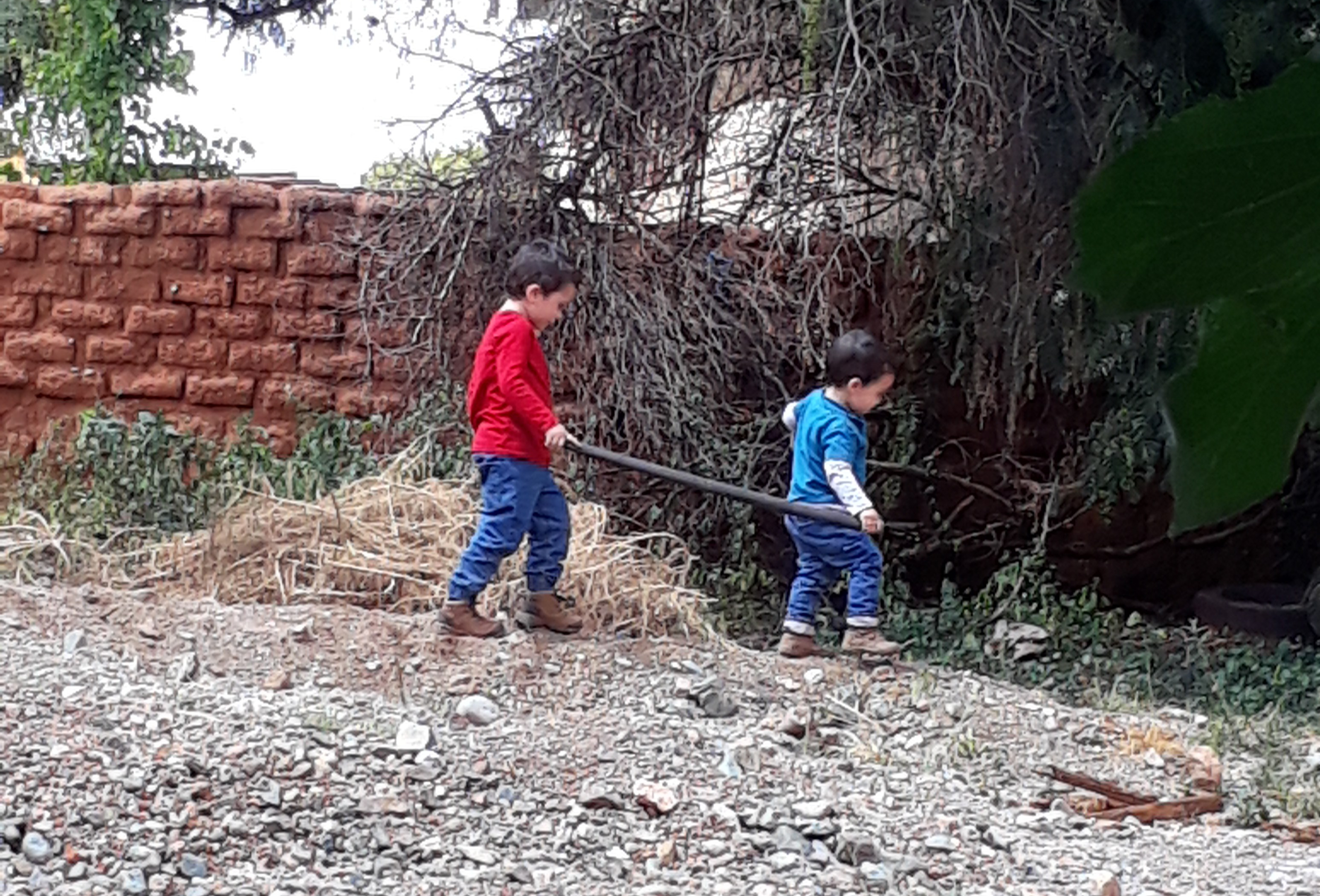 Wie geht es den beiden, dreieinhalb und zweieinhalb, denn so? Ihr Leben in Mexiko?Nun, es ist doch sehr bunt und süß und sonnig und locker. Gestern sind sie sehr müde von den Großeltern auf dem Dorf wiedergekommen. Daher schlafen sie jetzt um 7:45 Uhr morgens noch. Und ich lasse sie schlafen, auch wenn es nächste Woche hart wird, wenn sie um diese Zeit schon in er Kita sein werden. Gestern kamen sie völlig verdreckt zurück. Sie genießen ihre Zeit auf dem Dorf. Dort gibt es keine befestigten Wege oder einen großen Garten mit Rasen, wo sie herumspringen können. Die Erde ist rot. Es gibt ein großes Gelände, mit Unkraut und Ästen und Bäumen, wo sie herumspringen können und mit ihnen, der Hund und die Katze und die Hühner. Der Traktor ist aufregend und sie spielen gern mit Wasser, Pflanzen gießen, und mit Steinen und Erde.