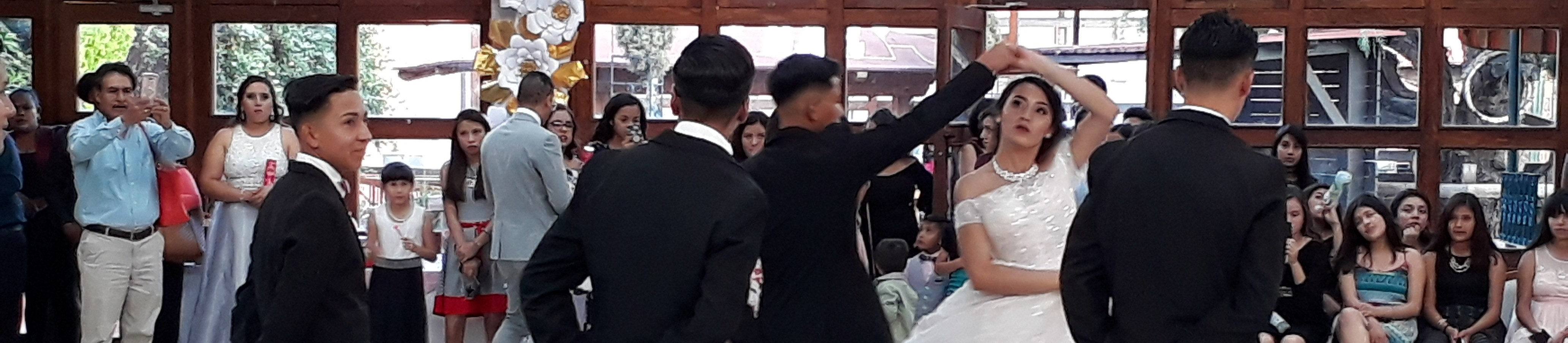 Bei meiner ersten Quinceañera – wie der 15. Geburtstag und somit auch das weibliche Geburtstagskind – heißt, war ich wirklich baff. In einem riesigem elegantem Veranstaltungsraum für über 300 (!!!) Personen empfing uns die Prinzessin im weißen Tüll-Glitzer-Kleid. Sehr gut erzogen und vornehm hieß sie uns willkommen und organisierte uns einen Platz, in den hintersten Reihen, weil der Saal aus allen Nähten platzte. Vorbei gingen wir am Süßigkeiten-Tisch und wo die Torte (die sehr an eine Hochzeitstorte erinnerte) schon auf die Gäste wartete. Vorbei an den zwei Sängern, die einträchtig mexikanische Klassiker sangen (die 12-köpfige Band folgte nach dem Essen).