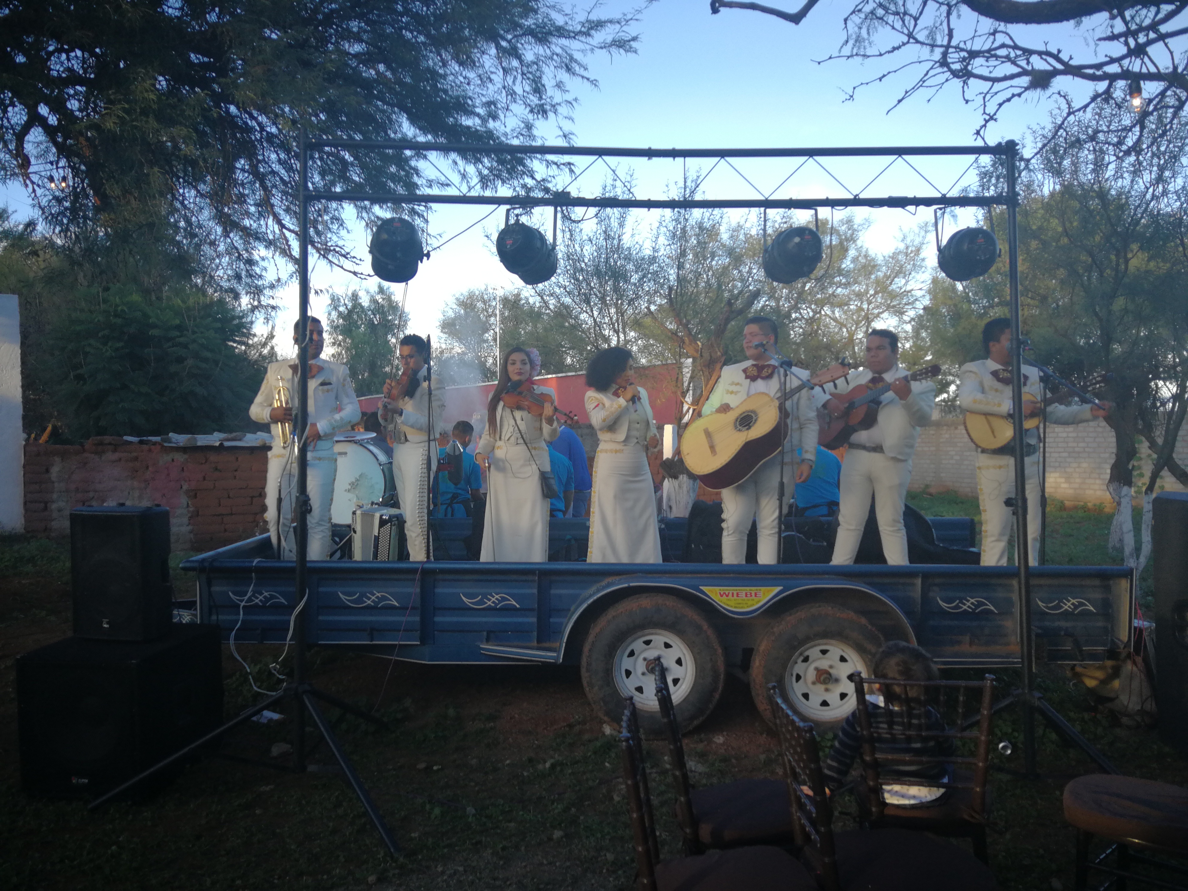 Nach der Trauung ging es dann auch direkt weiter mit dem Essen und es wechselte die Musik. Vorher hatten wir ein Duo, welches „Hintergrundmusik“ spielte und später kamen dann die Mariachis und die wechselten dann nach dem Essen ihren Stil auf norteño und populäre Musik. Und so ging der Abend dann weiter. Mit Kuchen, dem Tanz. Um 22.30 wurde dann noch einmal Essen serviert und um 1 Uhr fing es an zu regnen, wie passend, denn bis dahin hatten wir die Band bezahlt und somit waren wir um 1.45 Uhr in unserem Shuttle in Richtung Zacatecas.